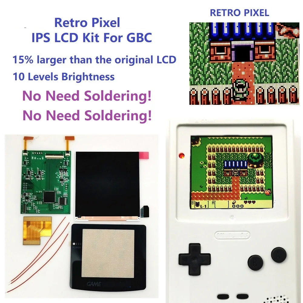No Need Soldering Q5 Retro Pixel Ips Lcd Screen Kit Backlight Brightness For Gameboy Color For Gbc Ips Lcd Kit Accessories Aliexpress